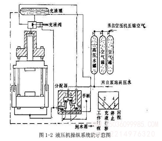 液壓壓磚機(jī)操縱系統(tǒng)的示意圖如圖1一2。液壓壓磚機(jī)的工作循環(huán)一般包括停止、充液行程、工作行程及回程,現(xiàn)分述如下。