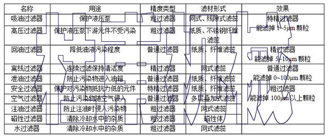 在選用過濾器時,過濾精度是首先要考慮的一項重要性能指標、它直接關系到液壓系統中油液的清潔度等級。過濾器按過濾精度可以分為粗過濾器,普通過濾器、精過濾器和特精過濾顆粒。