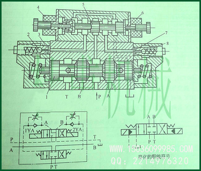 壓磚機里電液換向閥有彈簧對中和液壓對中兩種形式的電液閥。有圖為示。當電磁鐵線圈4、6都不通電時,電磁換向閥閥芯5處于中位,液動換向閥閥芯1兩端都未接通控制油液,在其對中彈簧的作用下,也處于中位。當電磁鐵線閥4通電時,閥芯5移動右位,控制壓力油經單向閥2流入主閥芯1的左端,推動主閥芯1移向右端,主閥芯1右端的油液則經節流閥7和電磁換向閥流回油箱。主閥1運動的速度由節流閥7的開口大小決定。這時主油路狀態是p和A通,B和T通。同理,當電磁鐵6通電時,電磁閥閥芯5移向左位,控制壓力油通過單向閥8,推動主閥芯1移向左端,其移動速度的快慢由節流閥3的開口大小決定,這時主油路狀態是P和B通,A和T通。